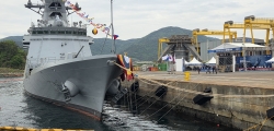 국제 군사 패권이 요동치는 가운데, 대한민국 해군의 미래 전략 자산인 차세대 호위함이 경남 고성, SK오션플랜트에서 진수식을 갖고 대양해군의 기치를 내세웠다. 해군의 울산급 배치3 4번 함인 제주함이 29일 진수식을 앞두고 SK오션플랜트 고성 조선소 안벽... -