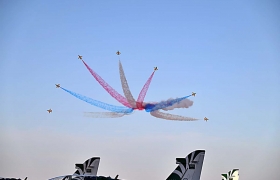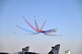 [더코리아뉴스 장상호 기자] 대한민국 공군 특수비행팀 블랙이글스(Black Eagle)가 중동 사막 하늘 모래 폭풍을 걷어내는 멋진 비행으로 관람객의 눈과 귀를 흥분 시켰다. 공군 특수비행팀 &lsqu...