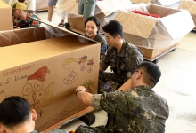 사진은 지난 6일 크리스마스 공수작전에 참가한 한측 요원들이 앤더슨 공군기지에서 진행된 '번들 빌드(Bundle Build)' 행사에서 투하되는 번들에 그림을 그리고 있는 모습.