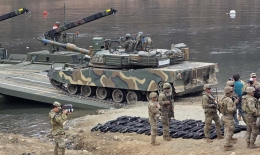[사진] 북진 감행! 한미 장병과 스트라이커 장갑차와 한국군 K200 장갑차가 신속한 부교 도하